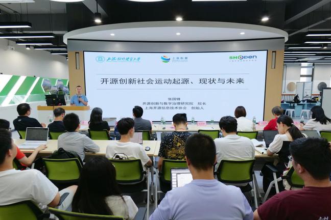9月12日,计3044am永利官网博达讲坛邀请上海开源信息技术协会秘书长,上海对外经贸大学开源创新与数字治理研究院院长张国锋开展《开源创新社会运动历史、现状与未来》讲座。上海道客网络科技有限公司首席运营官张红兵、技术总监李越、技术专家石勇军、赵燕宁,人力资源总监张倩倩应邀参加。院常务副院长张传林、党委副书记齐永晓、教学秘书徐曼、计算机系主任叶文珺、《云原生&开源技术夏令营》课程负责人薛梅、团委书记卢珍共同出席本次博达讲坛。