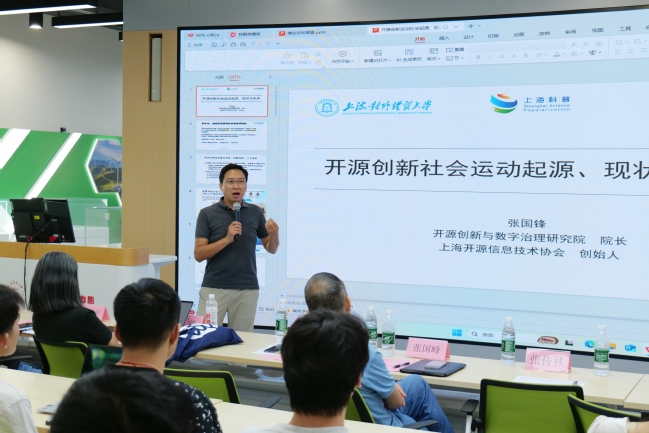 此外,为了让学生进一步接触行业前沿、理解开源文化的机会,9月12日,永利官网博达讲坛邀请上海开源信息技术协会秘书长,上海对外经贸大学开源创新与数字治理研究院院长张国锋开展《开源创新社会运动历史、现状与未来》讲座。张国锋在讲座中指出,开源作为数字经济的公共基础设施,需打破独占排他思维,讲求开放共享;讲座从现实动因、理论基础、实践路径三个维度,剖析开源创新国际合作的挑战与出路,让同学们对数字世界新规则有了深入了解。