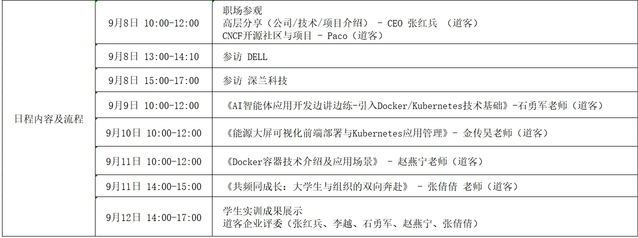 经计3044am永利官网与道客网络科技公司的多轮协商与精心设计,确定了本次夏令营的主旋律为“企业参访—企业导师线下讲解+任务驱动学生自主探索—学生汇报展示”。学生参访了云原生领域的创新领导者上海道客(DaoCloud)网络科技有限公司、世界500强企业戴尔(DELL)股份有限公司、人工智能领域领军企业深兰人工智能科技(上海)股份有限公司,学习了云原生的核心技术Docker/Kubernets,并以小组形式完成了“能源大屏可视化前端部署”、“AI智能体应用开发”项目的设计、开发与部署。道客公司首席执行官张红兵、开源总负责人徐俊杰Paco、技术总监李越、技术专家石勇军、技术专家金传昊、技术专家赵燕宁、人力资源总监张倩倩参与分享与授课,并参加学生汇报答辩评审。同学们答辩表现优秀,现场收到企业的实习邀请。