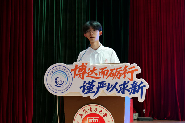 2025级计算机科学与技术专业新生马铭蔚代表学院全体新生发言,她分享了入学以来的感悟与未来规划,表达了对大学生活的憧憬与立志成才的决心。2023级信息安全专业学生郑文棣结合自身经历,从“主动学习、勇敢实践、从容成长”三个方面为新生提供了宝贵建议。