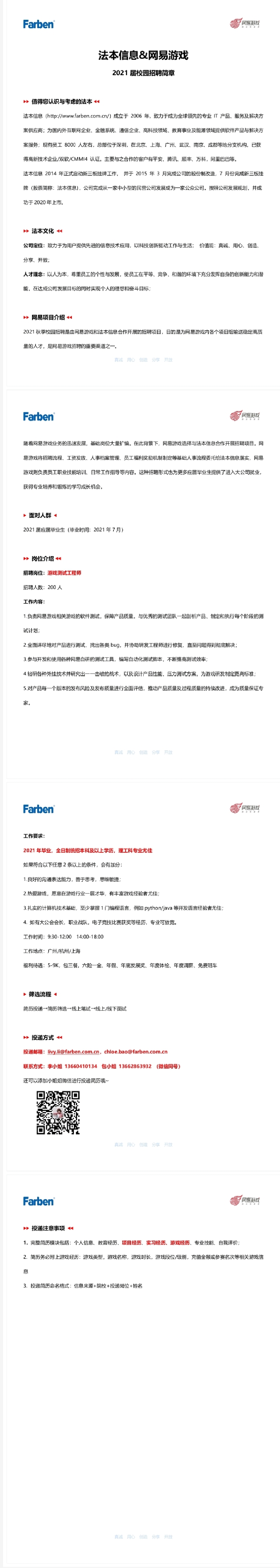 【招聘信息】193-202007法本信息&网易游戏招聘