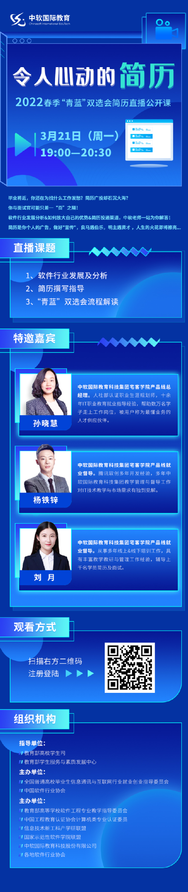 【招聘信息】286-202203春季“青蓝”双选会简历直播公开课