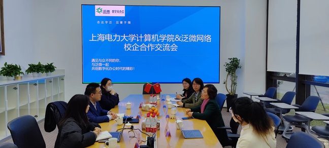 随后,魏建华书记、齐永晓副书记与泛微网络事业部总经理孟连磊、HR徐艳、上电计算机实习生陈沁开展校企合作交流。双方就如何进一步加强校企合作,在人才培养、学生就业、科研等方面进行交流,达成了系列落地决议。人事经理刘建辉向同学们详细介绍了公司的业务板块,泛微是一家专注于移动办公软件的企业,OA系统、电子签章、电子签名等是他们的核心内容;介绍了泛微对“软件销售经理”“项目实施工程师”的岗位要求和薪酬福利,向同学们发出邀请。陈沁同学讲述了自己在泛微的实习经历,帮助到场同学答疑解惑。