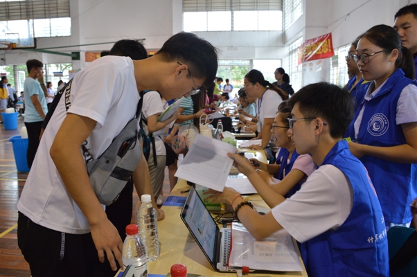 9月3日,永利官网迎新工作全面展开,院党委副书记余南飞老师亲自部署,全体在岗辅导员共同安排落实,确保迎新工作的顺利进行。上午7时,来自15级、16级的49名志愿者分布在南体育馆、国旗广场两个报到处,分别就注册登记、材料收发、入住办理、行李搬运、绿色通道办理、秩序维持、疑难解答等多个方面开展志愿者服务工作。