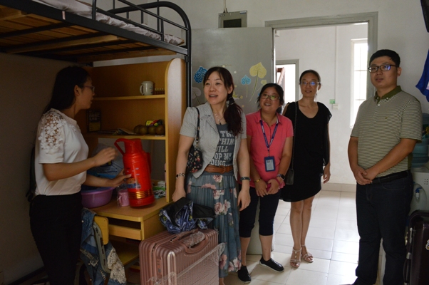 下午2时,费敏老师、余南飞老师、新生辅导员朱佳老师与部分班主任老师一起走访永利官网新生宿舍,问候新生的住宿情况并耐心解答新生家长的疑问。