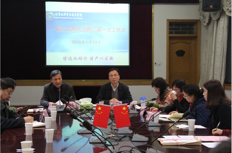 在一届三次教代会上,代表们审议并表决通过了永利官网院长雷景生同志所作的题为《全院齐心搞计算 举杯笑谈大数据》的工作报告,报告从“理顺关系,改进作风,强化学院的凝聚力”、“ 理清思路,明确定位,提升学科内涵”、“ 以高水平师资队伍建设为抓手,凝练学科团队”、“ 以专项工程为引擎,搞好本科教学工作”、“ 以多种形式的‘大学生科技创新活动’为依托,切实提升人才培养质量”和“以举办学术论坛为平台,加强对外学术交流与合作”六个方面回顾总结了学院2014年工作,审视了“研究成果的层次有待提高“、”学科培养层次急需提升“、”学科带头人和骨干的引进需要加强“和” 电力特色还需强化“四个方面的问题,并提出2015年工作思路,即“坚持计算机技术与智能电网相关技术结合,形成鲜明电力特色的计算机类学科的发展理念不变;坚持计算机技术的前沿研究与智能电网信息支撑技术研究协同发展的方针不变”的“两个坚持不变”和实现“工作重心要由办学条件建设向质量内涵建设上水平转变;由单纯的教学型学院向教学研究型学院转变”的“两个根本性转变”。