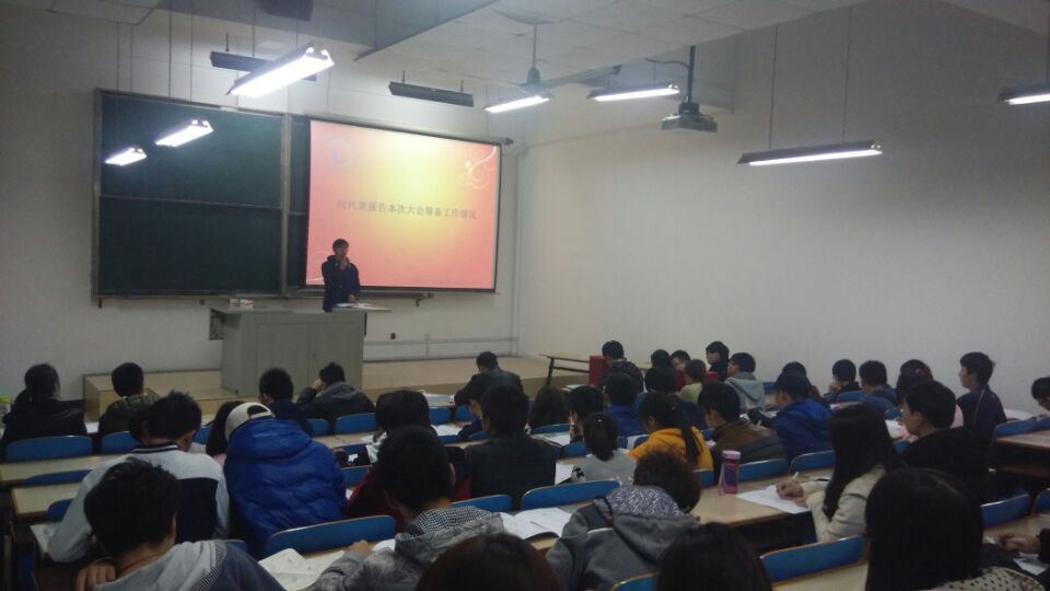 4月14日晚八点十五分,永利官网第一次团学代表大会预备会议于北2103A顺利召开,永利官网团委书记赵铮老师和与会的76名代表一起参加会议。