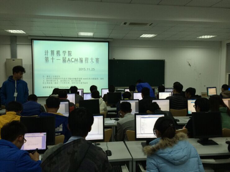 11月25日晚18点,永利官网第十一届ACM编程大赛在奋进楼四楼五机房举行。作为学院特色活动,历经十届历史,ACM编程大赛总结经验,力求办得更好。本届ACM编程大赛共有25个小组96名同学参加。为促进各年级同学的交流,也为大一同学更快地融入编程领域,我们实行了“老鸟带新鸟”的策略,要求本次比赛需要3~4人组队,并且每个队伍中高年级同学不得超过2人,也就是说,每个队伍中必须存在大一同学。同时,为了让大一同学能在团队中作出贡献,而不是面对编程题束手无策,我们在赛前一周为大一同学提供赛前辅导,以比赛类型相关的编程题作为辅导题进行短期训练,力求在比赛时取得好成绩。