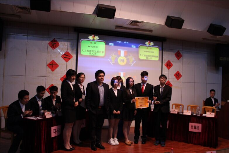 正方环化学院阐述“人工智能的发展将解放人类”观点,永利官网反方则表明“人工智能的发展将会禁锢人类”观点。永利官网以人工智能的发展会使人类对人工智能产生依赖性,和降低对问题探索构成的体验感为论据,逐层展开,层层深入,表明人工智能的发展会禁锢人类的发展。正方环化学院则用第一次工业革命解放了纺织工人等科技的突破进行防御,更摆出最新人工智能的杰作AlphaGo进行回击。双方辩手气场十足,口齿伶俐,正反双方你攻我守,辩词有力,每一位辩手反驳之后,场下掌声便会接连不断。最后,于兮老师综合评委意见对本次决赛做出了总结,肯定了双方的观点,之后又很现实的指出正反两方的细节问题。恭喜永利官网辩论队获此次校辩论赛冠军,同时也恭喜环化学院李国伟同学获得最佳辩手的称号。