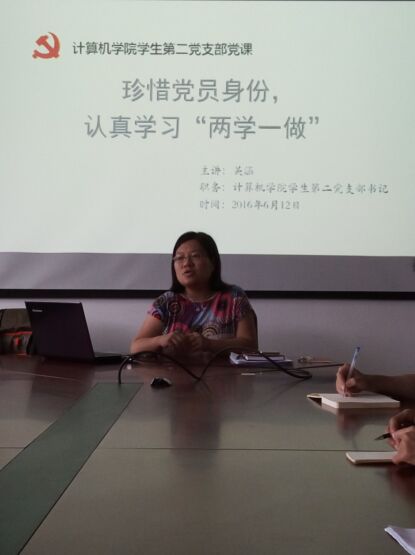 6月12日,永利官网学生第二党支部书记吴涵老师为支部全体党员上了一堂主题为“珍惜党员身份,认真学习‘两学一做’”的党课,旨在让党员们重温“两学一做”的内容,积极践行“两学一做”。